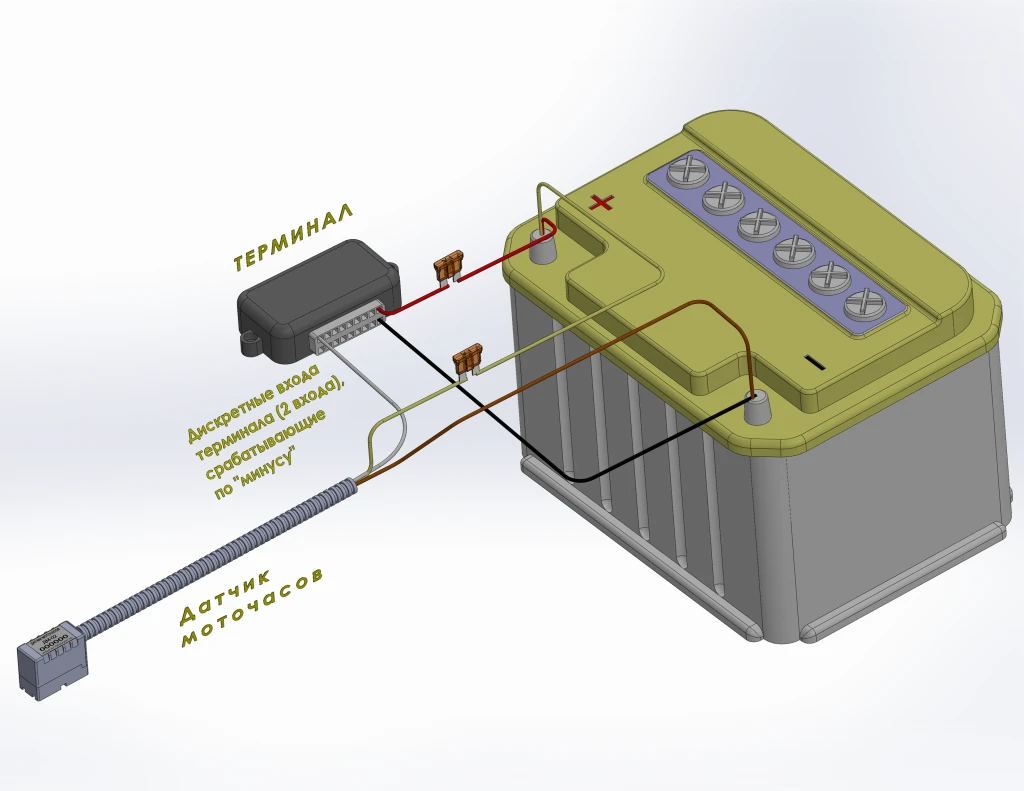 Используется с терминалами мониторинга транспорта как дискретный датчик статуса двигателя. Подходит для строительной, дорожной, сельскохозяйственной и другой спецтехники, где учет моточасов важен для обслуживания и списания топлива.