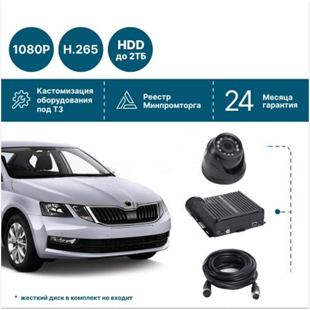 Комплект для автошколы на 2 камеры NSCAR 201 FullHD_HDD - надёжное решение для видеонаблюдения в учебном автомобиле.
