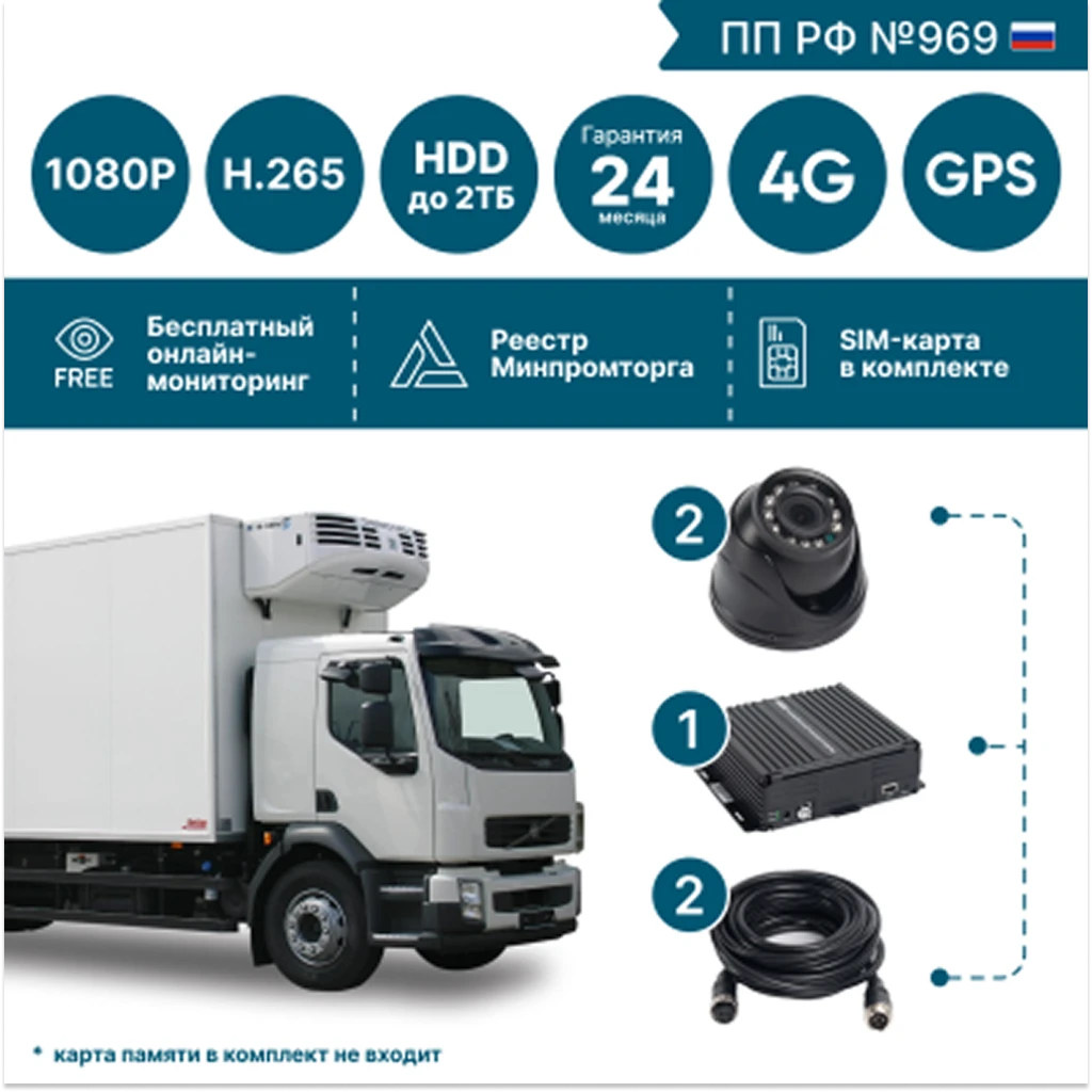 Комплект видеонаблюдения на 2 видеокамеры для опасных грузов BN201 с опциями 4G+GPS/Глонасс FullHD_SD
