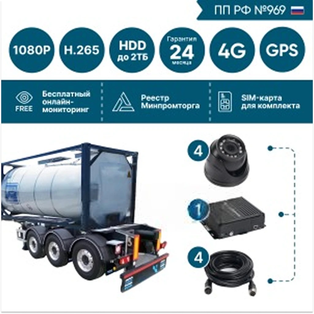 Комплект видеонаблюдения для спецтехники NSCAR PK201 Full HD