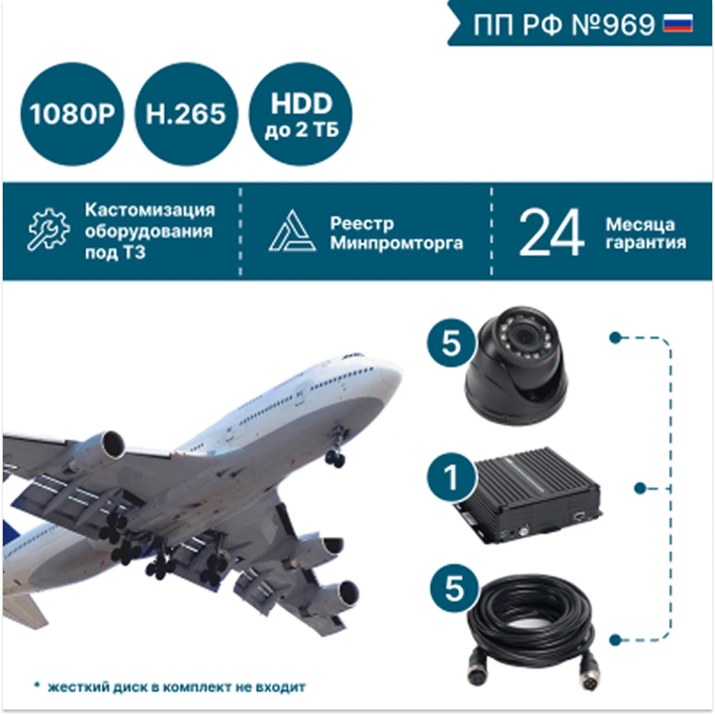 NSCAR BUS501: 5 FullHD камер + HDD. Круговой обзор для автобусов и коммерческого транспорта. Надежная запись 24/7